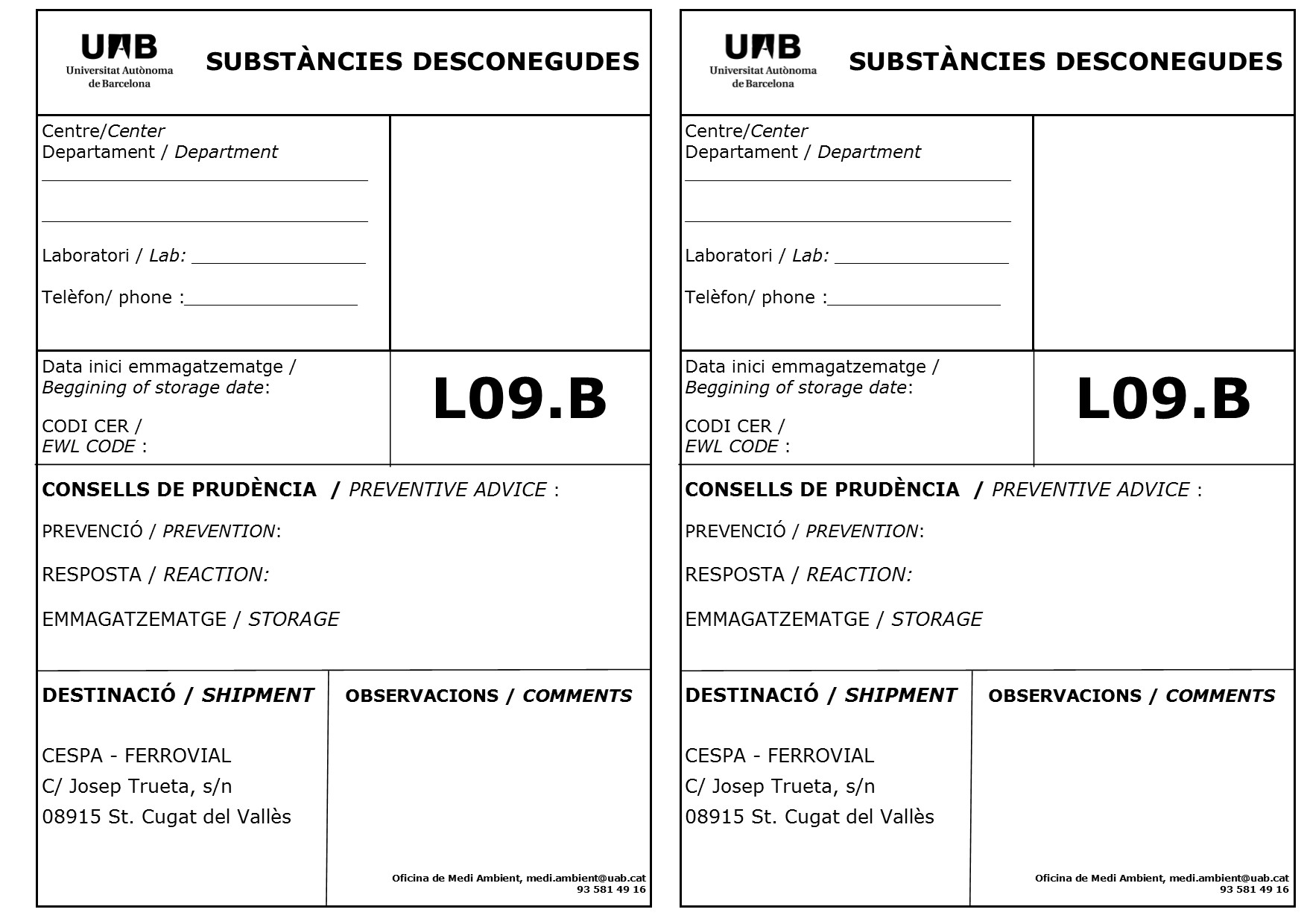 S09A Reactivos y Sustancias Desconocidas en Envase Original
